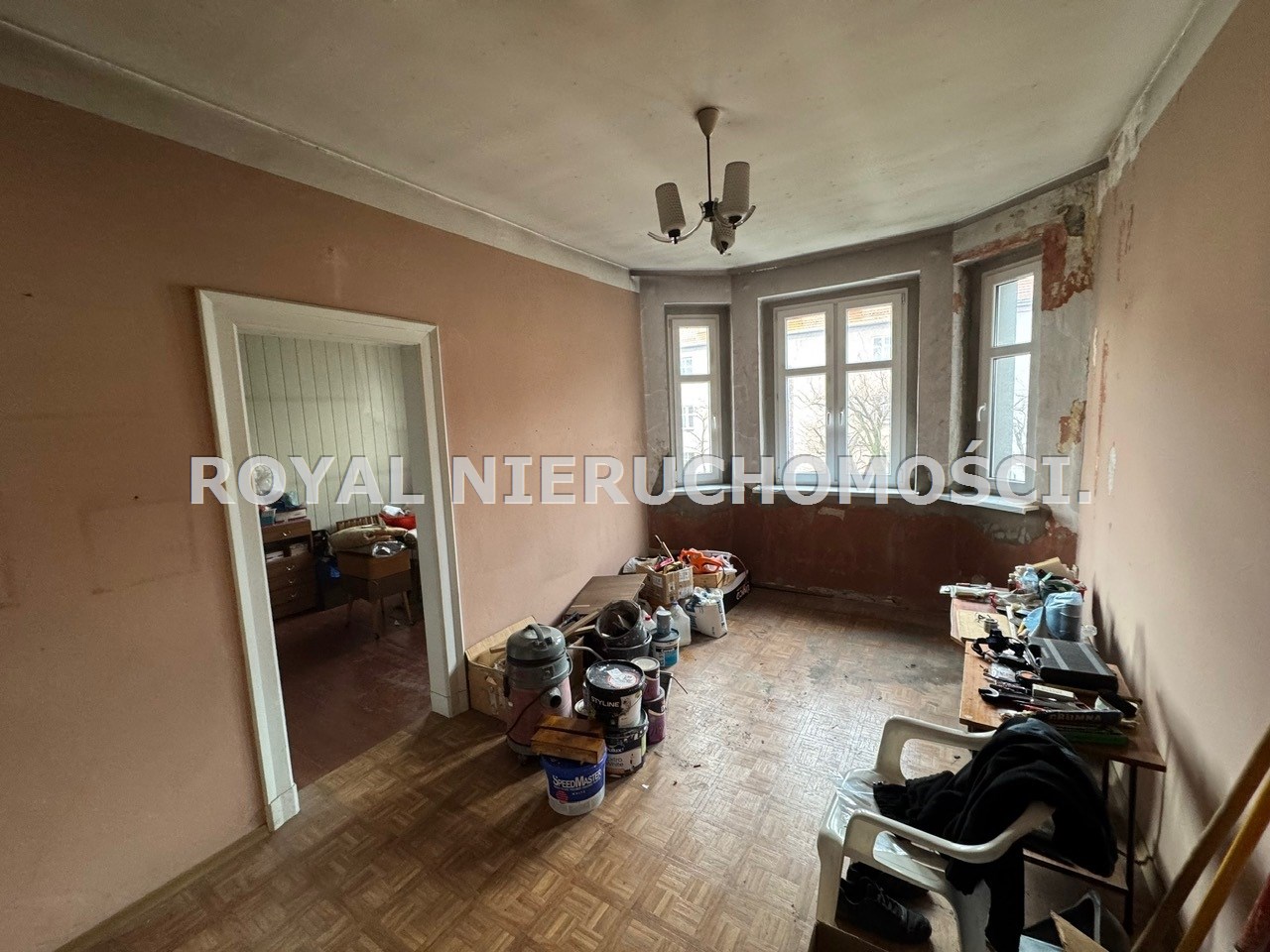 Mieszkanie w środku jest w stanie do remontu.