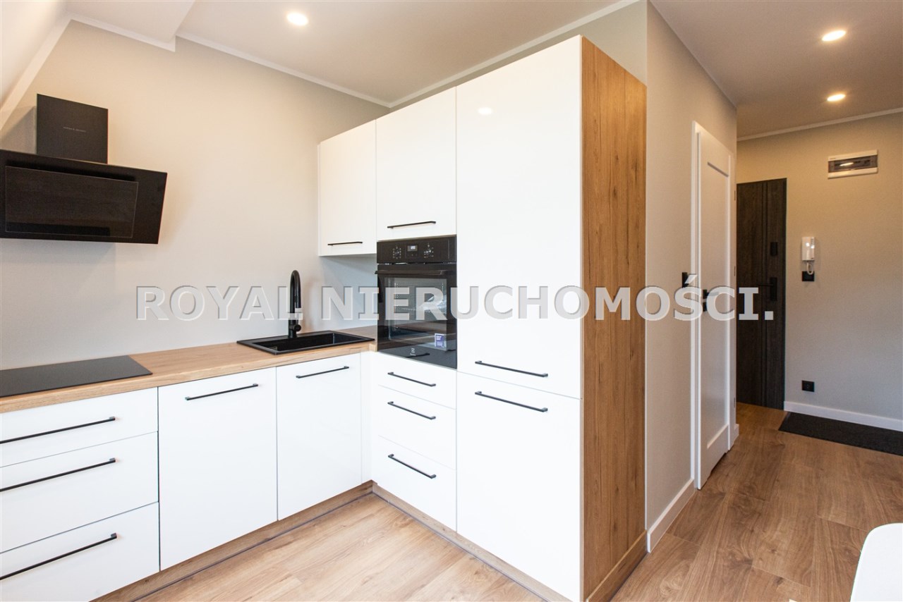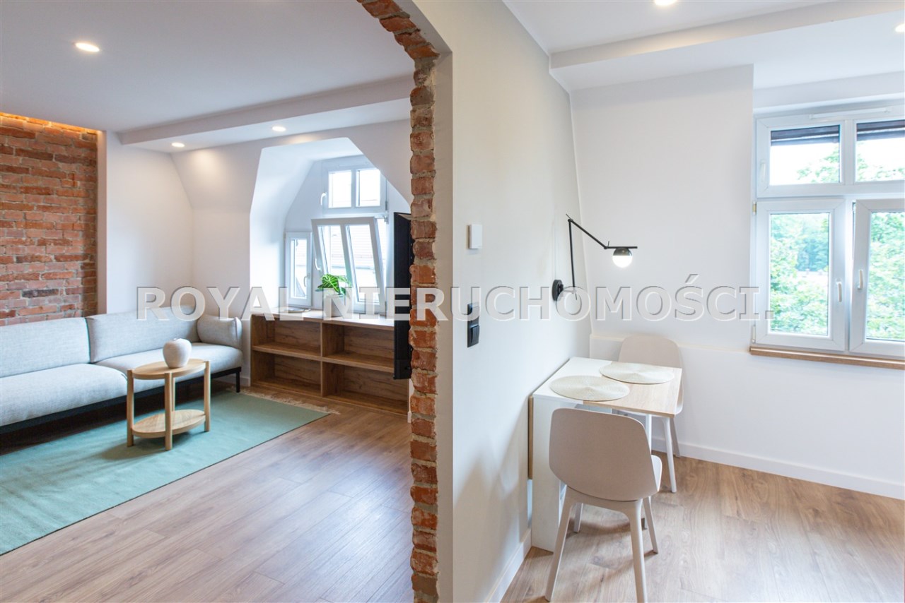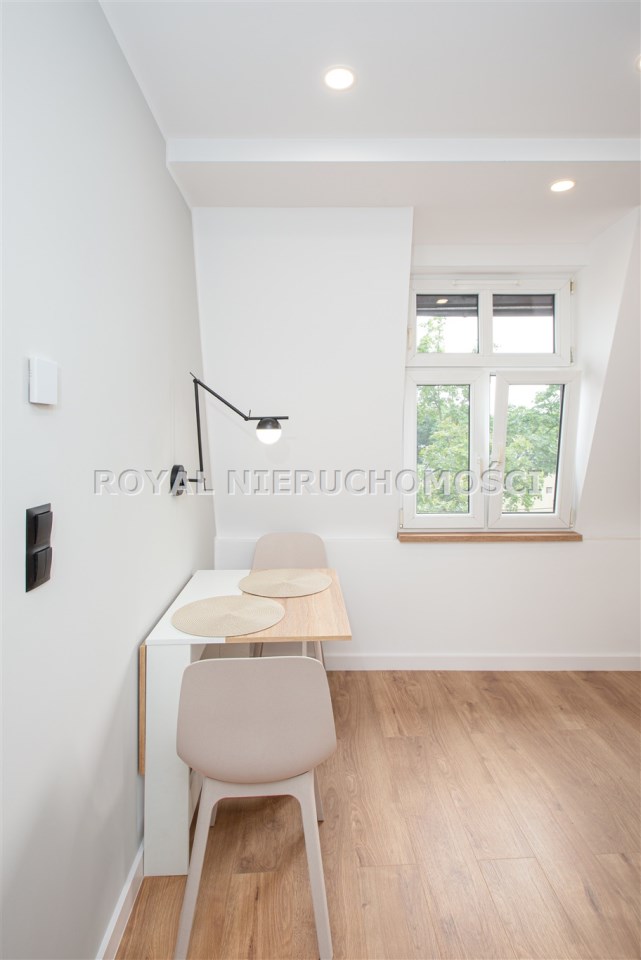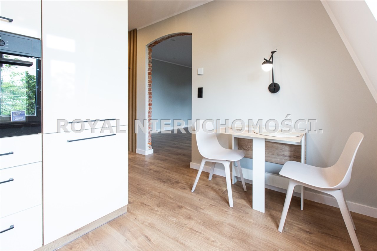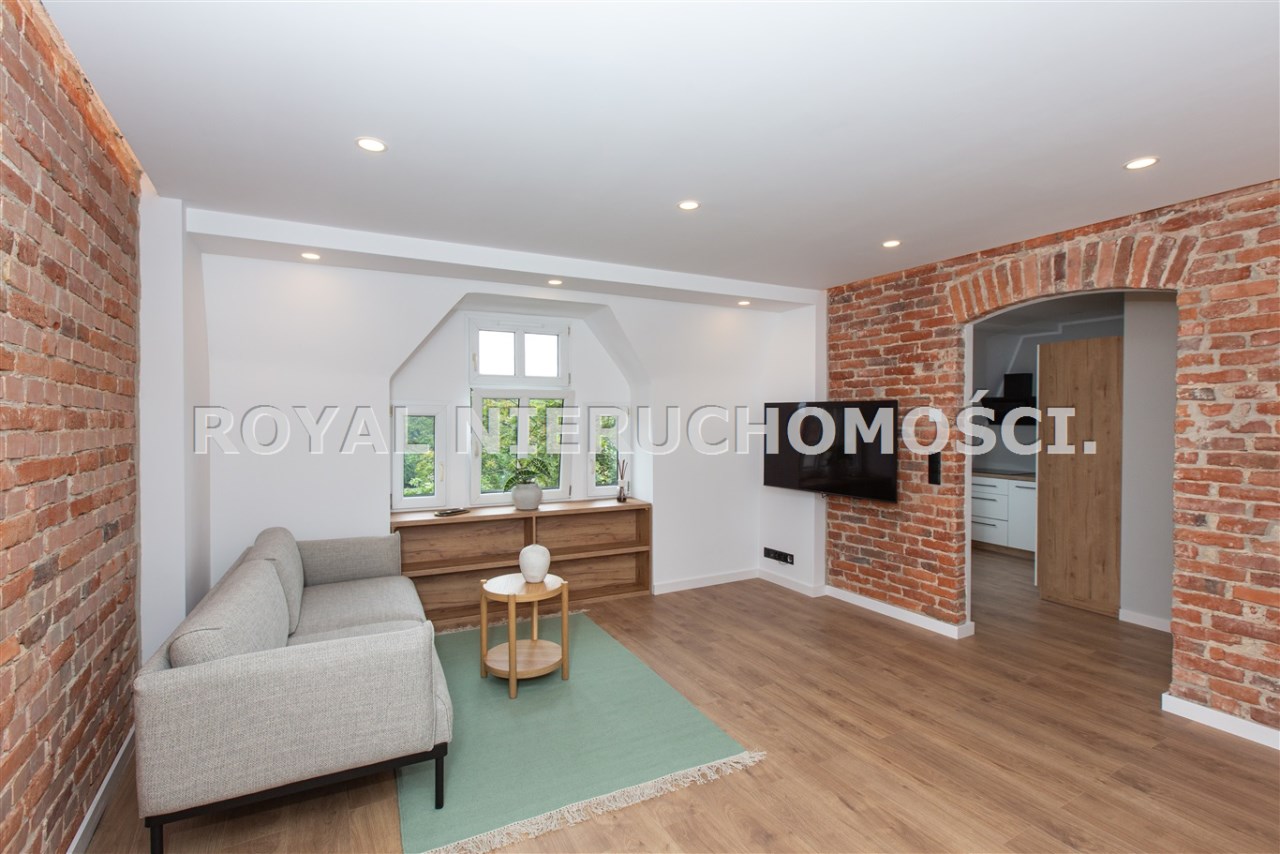 Komfortowa kawalerka położona na 3 piętrze /na 4 strych / zadbanej kamienicy przy ul. Podlesie. W pełni wyposażona /TV, zmywarka ,pralka, itp/ .wszystko nowe nie używane.Ładna aranżacja wnętrza. W okolicy głównie zabudowa jednorodzinna. Miejsce parkingowe na zamykanej posesji. Spokojna dzielnica, dobry dojazd do centrum.